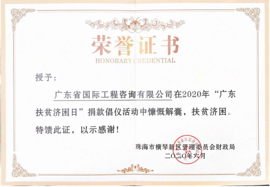 • 我公司積極參與橫琴新區(qū)2020年“廣東扶貧濟(jì)困日”活動