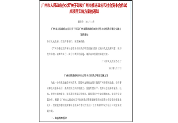 項目亮點 在課題研究成果的基礎(chǔ)上,廣州市政府2017年出臺了《廣州市推進政府和社會資本合作試點項目實施方案》。